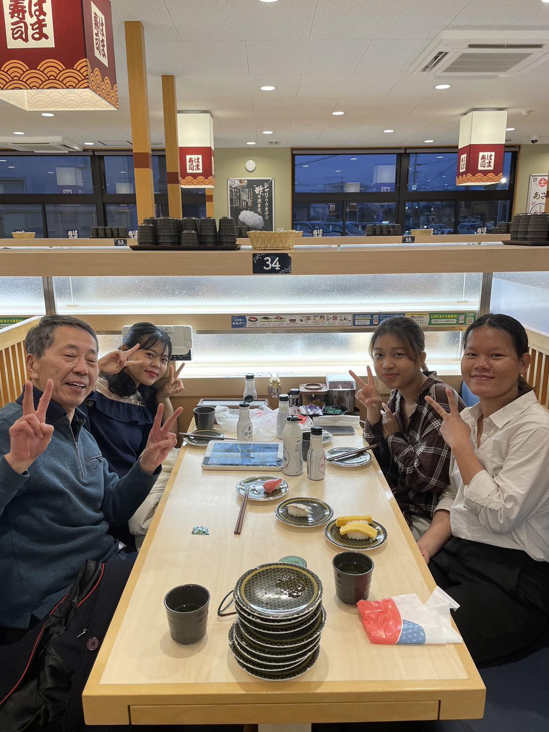当社主催の特定技能の方達との食事会のひとコマです。日本食を知ってもらうため寿司、ラーメン、うどん...